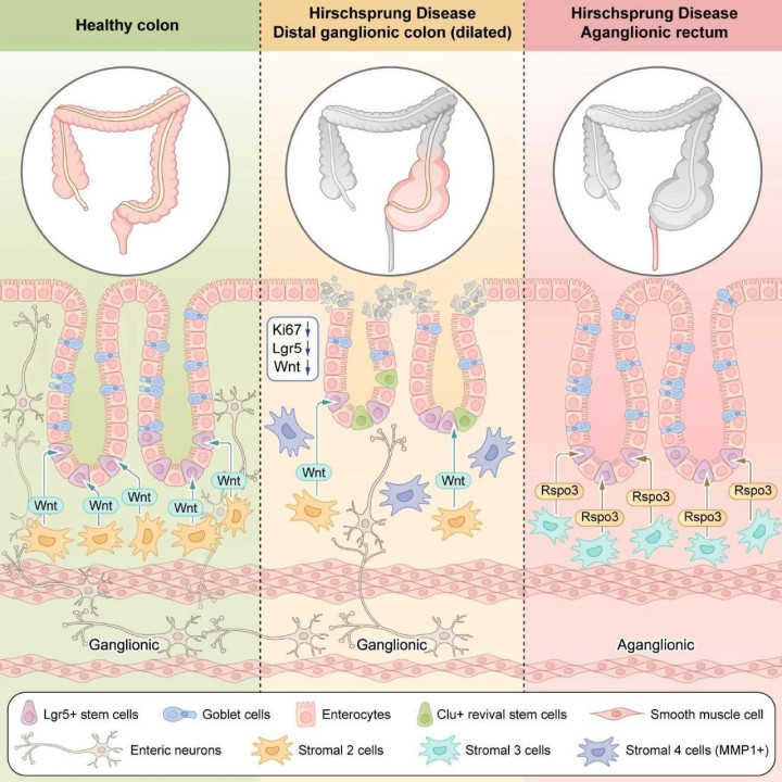 该研究首次揭示了基质细胞-肠上皮修复串扰功能受损在HSCR并发症中的关键作用,明确了HAEC的发病机制及潜在治疗靶点。未来,对于肠上皮-基质细胞相互作用的动态观察将可能对多种儿童肠道疾病的个体化管理及治疗产生重大影响,并有望改善此类患者的治疗结局和生活质量。