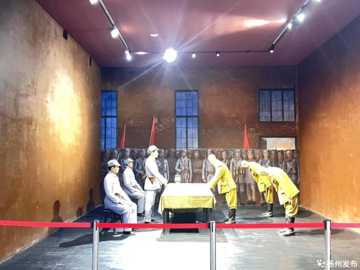 “一张桌子,一盏马灯……1945年12月26日凌晨,日军岩崎学大佐在昏黄的灯光下,正式向新四军投降。”侵华日军向新四军投降处旧址讲解员李昕面对参观者,指向受降厅中央复原的历史场景。80年前的这一刻,标志着高邮战役的全面胜利,残留在华中解放区中心最后一个日伪据点被拔除,牵制了国民党军沿津浦路北犯我解放区的行动。同时,使华中解放区的苏中、苏北、淮南、淮北地区完全连成一片,大大鼓舞了解放区军民反对内战、保卫抗战胜利果实的信心。