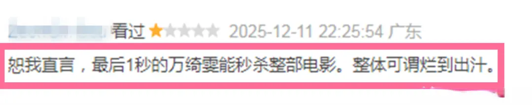 ——“最后1秒的万绮雯能秒杀整部电影。整体可谓烂到出汁。”